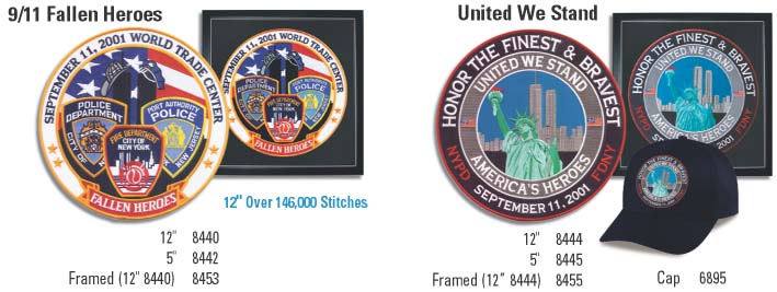 Stunning embroidery, impressive size, and dramatic detail add up to Tribute Emblems taht will remain treasured collectibles for years to come. With over 130,000 stitches, these 12" emblems are particularly impressive and look great framed or on the back of a jacket.